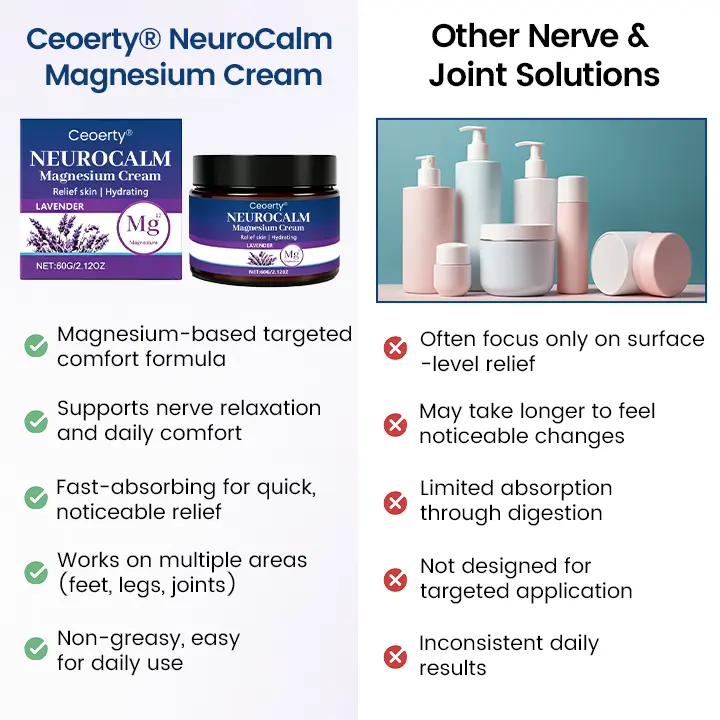 Ceoerty® NeuroCalm Magnesium Cream combines high-absorption magnesium with carefully selected supporting ingredients to help promote nerve comfort, relaxation, and daily balance. This advanced formula is designed to support a more comfortable body state—so you can move easier, rest better, and feel more at ease throughout the day and night.